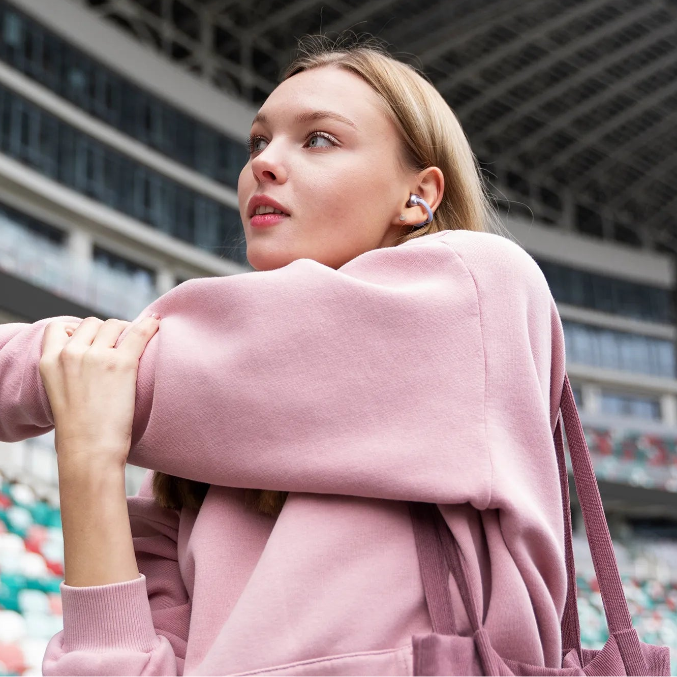 Fabricados con materiales ultraligeros y una estructura de presión cero, estos auriculares garantizan comodidad durante todo el día. Apenas notarás que los llevas puestos.Diseñados para ofrecer una comodidad sin esfuerzo, el diseño open-ear incorpora cables de memoria de titanio ultraflexibles que se adaptan a cualquier forma de oreja.